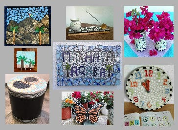 Mosaics are designs and pictures made by placing small pieces of glass, stone, and tile into patterns. Mosaics are some of the most beautiful pieces of artwork. I think a well-done mosaic is as beautiful as any painting, and often requires a lot more work and creativity.